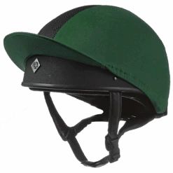 This low-profile helmet comes with a matte silk cover embroidered with the Charles Owen logo.
