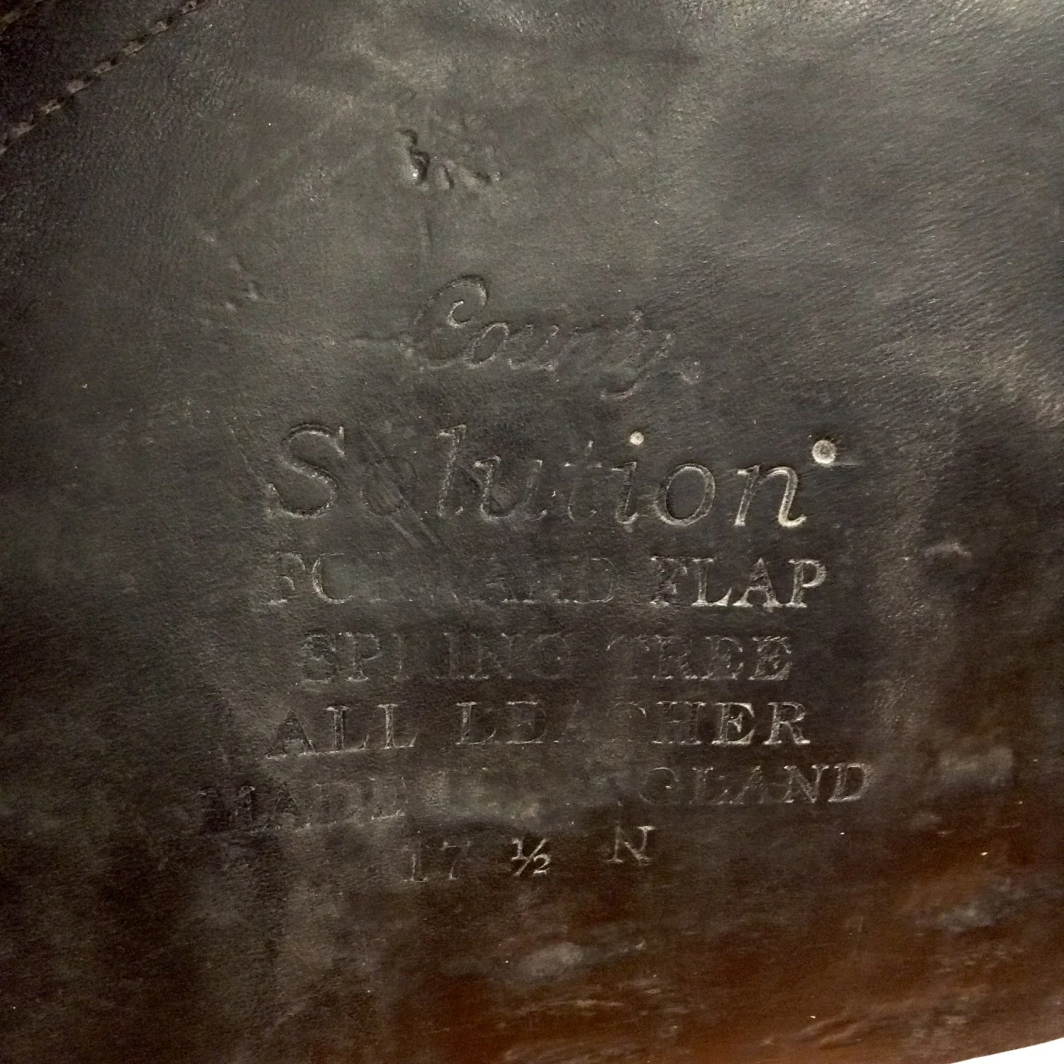 - Stamped: County Sensation Forward Flap Spring Tree All Leather Made in England 17 1/2 N