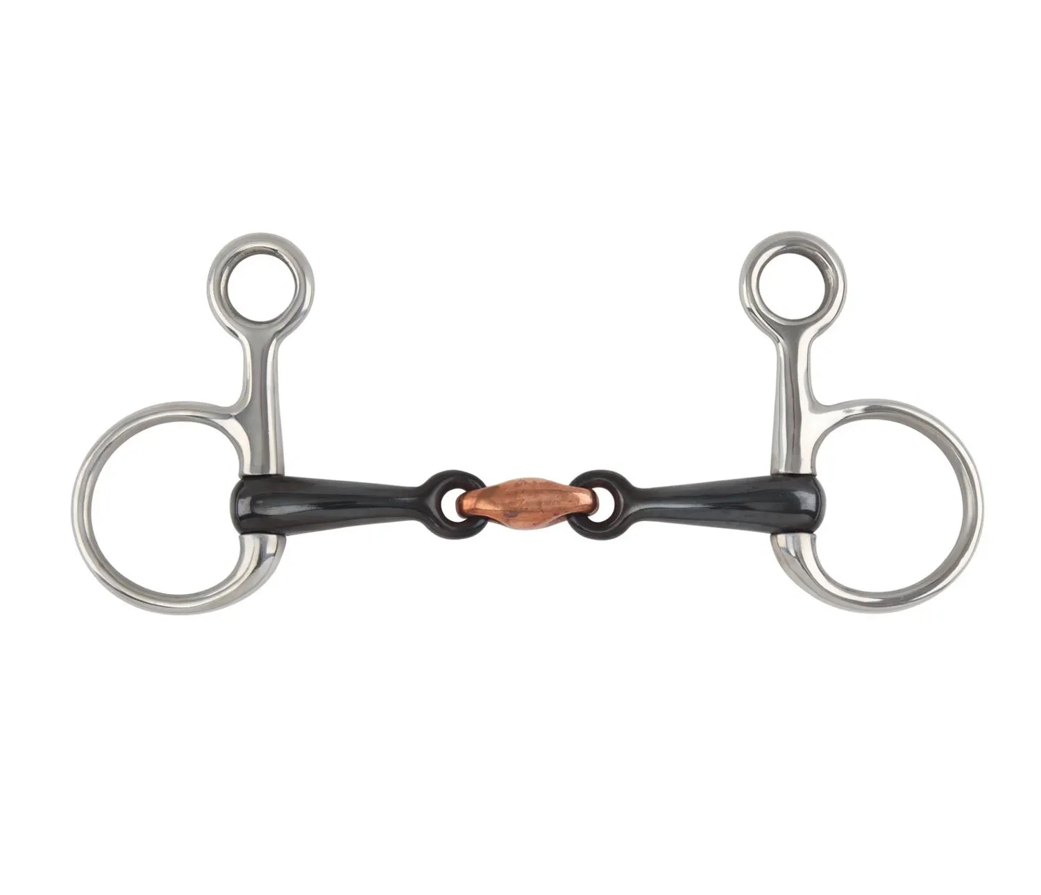 With a sweet iron mouthpiece designed to produce a sweet taste and encourage salivation as it oxidizes. This hanging cheek snaffle bit is useful in allowing a small amount of poll pressure whilst still being a snaffle.