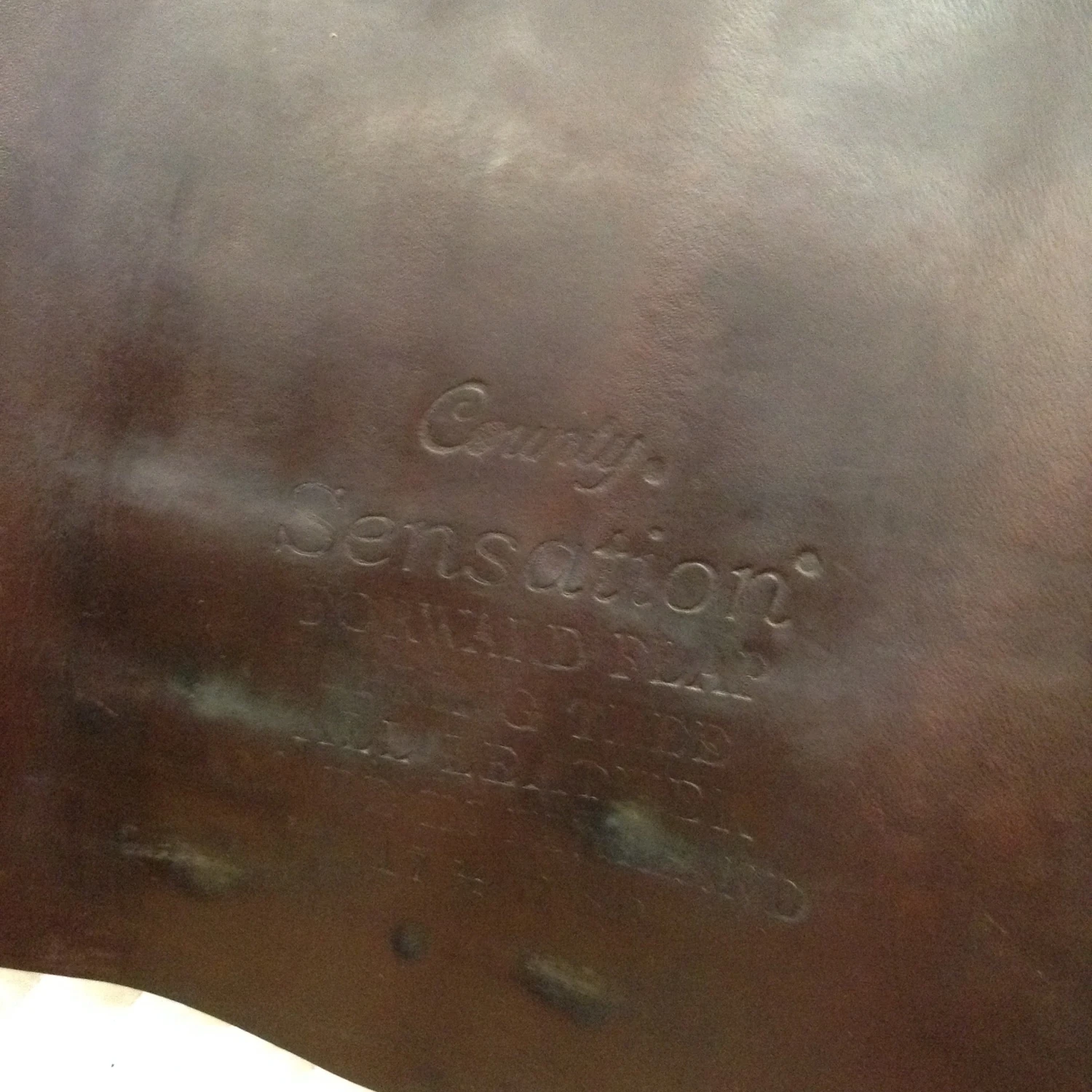 - Stamped: County Sensation Forward Flap Spring Tree All Leather Made in England 17 1/2 N SR
